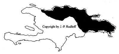 | Bei Schmidt wurde irrtümlich Honduras als Herkunftsland angegeben. Die Spezies konnte jedoch auf Hispaniola wiedergefunden werden. Sie besiedelt hier den Nordteil der Insel, die Verbreitungs-grenze der beiden Arten cancerides und atrichomatus wird durch die Cordillere bestimmt. |