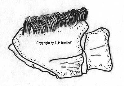 | Färbung: die Art liegt nur als Alkoholmaterial vor, lebende Tiere sind bisher unbekannt. Die Lebendfärbung ist wahrscheinlich sehr ähnlich der von Phormictopus auratus. |